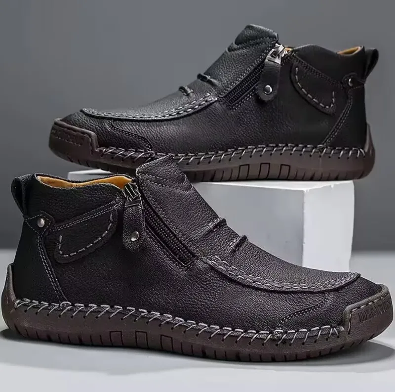 Classic Handmade Leather Boots for Men Fashion Outdoor Casual Ankle Boots Comfort Slip on Driving Shoes Men's Boots Large-size48